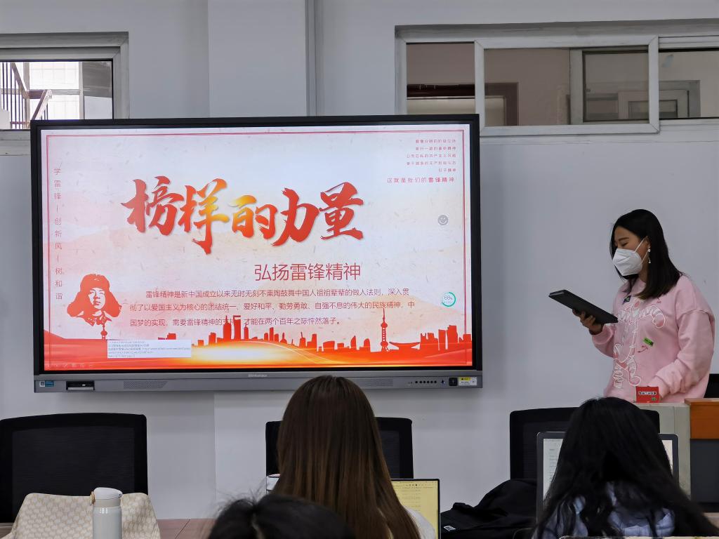 主讲人吴玉果从什么是雷锋精神、雷锋精神的时代内涵、习近平总书记谈雷锋精神以及如何学习雷锋精神四个方面开展学习雷锋精神的演讲。首先,她指出雷锋精神具体包括四部分,“爱憎分明的阶级立场”“言行一致的革命精神”“公而忘私的共产主义风格”和“奋不顾身的无产阶级斗志”;雷锋精神的核心内容是全心全意为人民服务,为了人民的事业无私奉献。其次,她将雷锋精神与当前时代背景相结合,阐明了雷锋精神的时代内涵,即“向上”的人生姿态和“向善”的人生追求。基于疫情的大环境,她着重介绍了疫情下的雷锋精神,新时代的“雷锋们”前仆后继奔赴抗疫前线,合力筑牢了抵御疫情的堡垒。再次,介绍了习近平总书记谈雷锋精神,习近平总书记在2018年9月28日参观雷锋纪念馆时指出,“雷锋是时代的楷模,雷锋精神是永恒的。雷锋精神与我们当前为人民服务、做人民的勤务员都是一脉相承的,雷锋精神永远值得弘扬。”最后,指出如何学习雷锋精神,在新时代大力弘扬雷锋精神,要深刻把握坚守崇高理想、秉持人民情怀、践行奉献精神、投身民族奉献的思想内涵,把崇高的理想信念和道德品质追求融入日常的工作生活中,在本职岗位上做一颗永不生锈的螺丝钉。